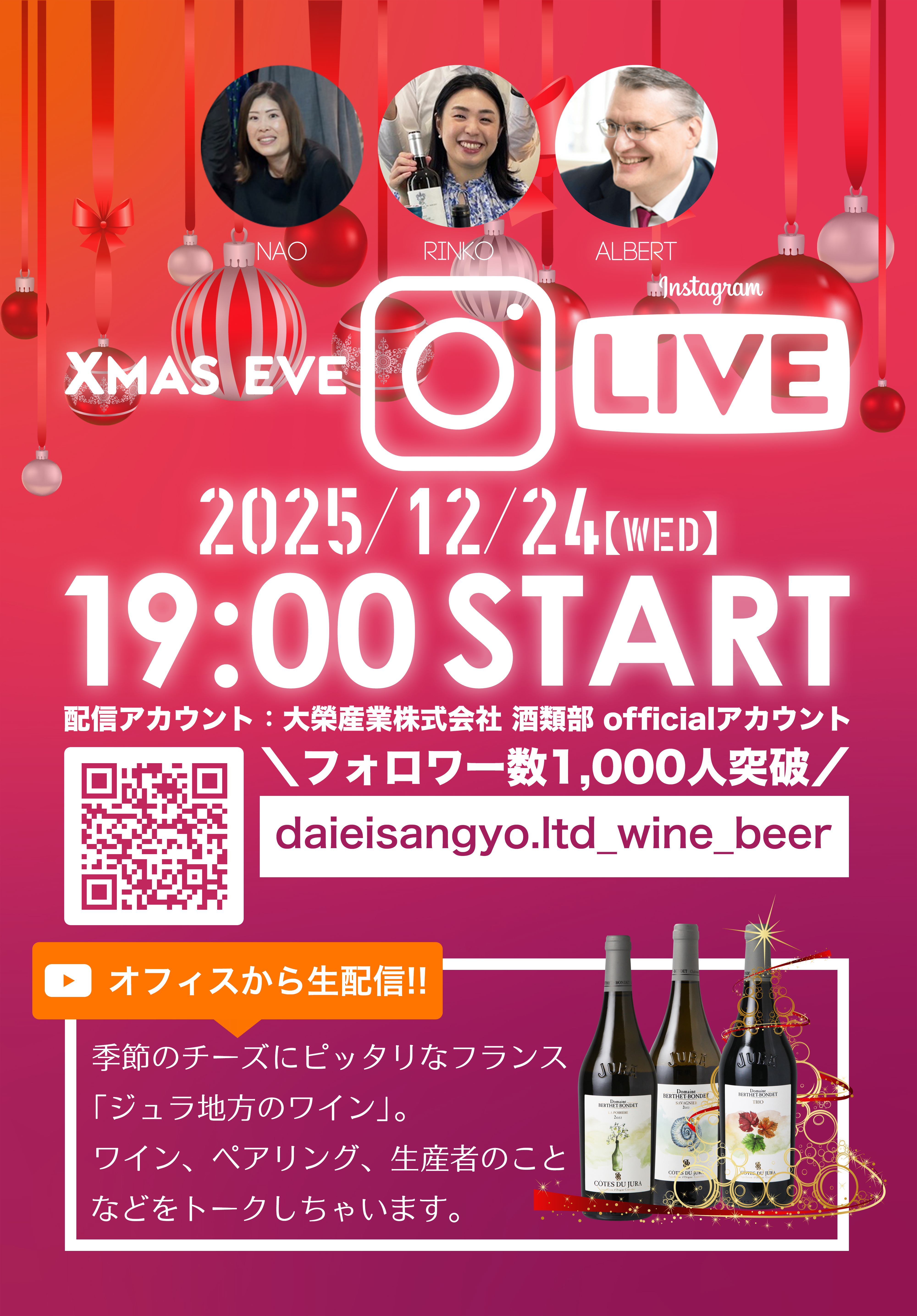 12月24日(水)クリスマス・イヴ19:00~Instagram公式アカウントよりライブ配信いたします。
